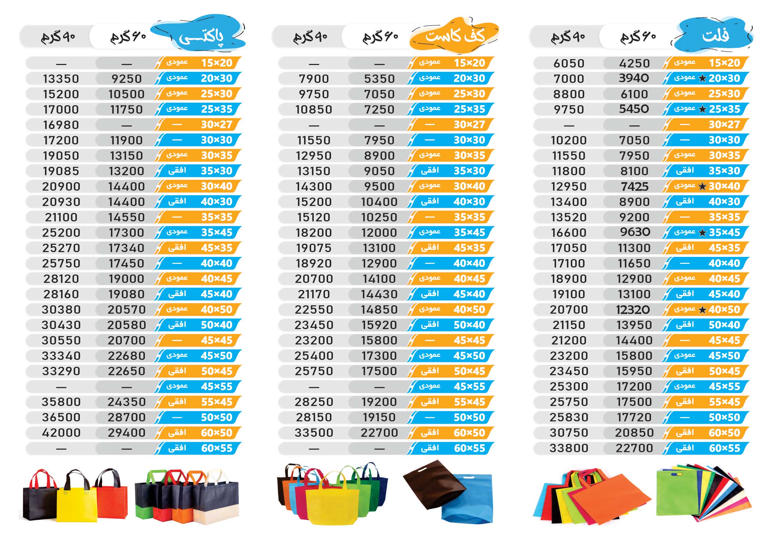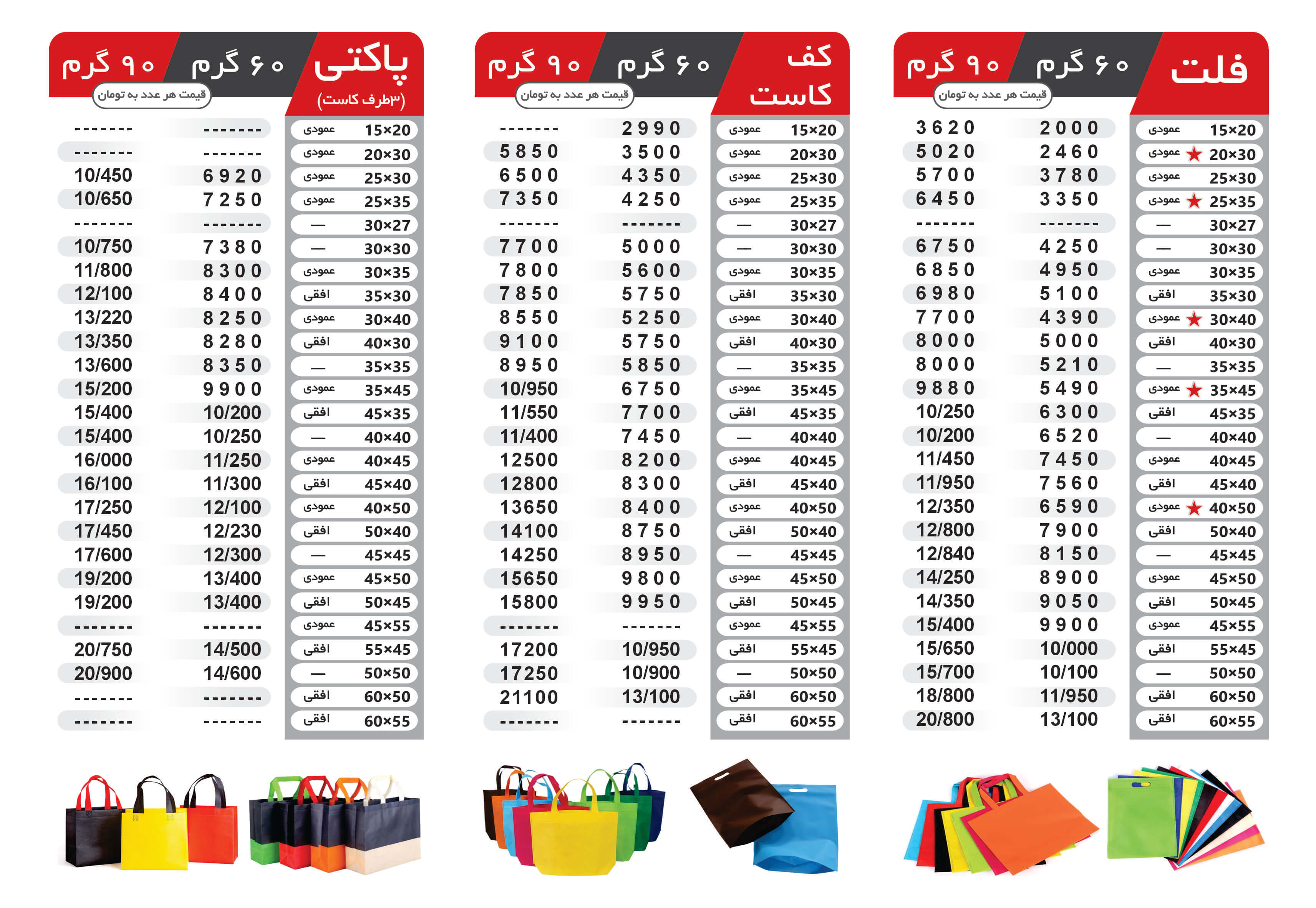 بگ پارچه ای در مجتمع چاپ آلتین آی در دو گرماژ کاربردی و مخصوص به ساک دستی سوزنی بصورت 60 گرم و 90 گرم الیاف فشرده و تنها با پارچه مخصوص بادران یزد تولید، چاپ و ارائه شده است. این دو گرماژ به راحتی پاسخگویی تمامی نیازهای مشتریان و صاحبین مشاغل را فرآهم نموده و مورد استقبال بی نظیری هم از سوی مشتریان نهایی ایشان قرار گرفته است.